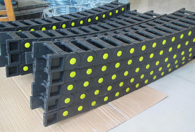 塑料拖鏈可分為塑料工程拖鏈和塑料尼龍拖鏈。