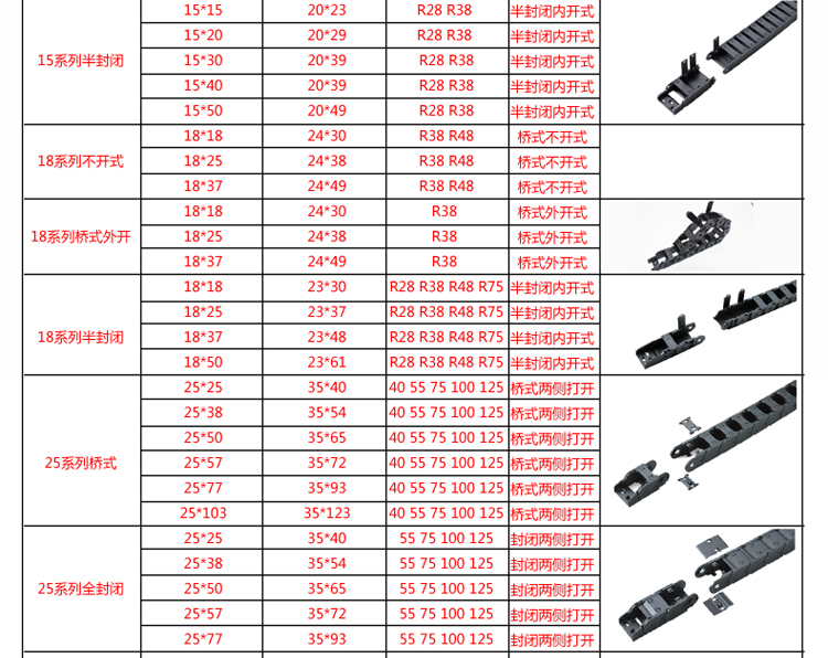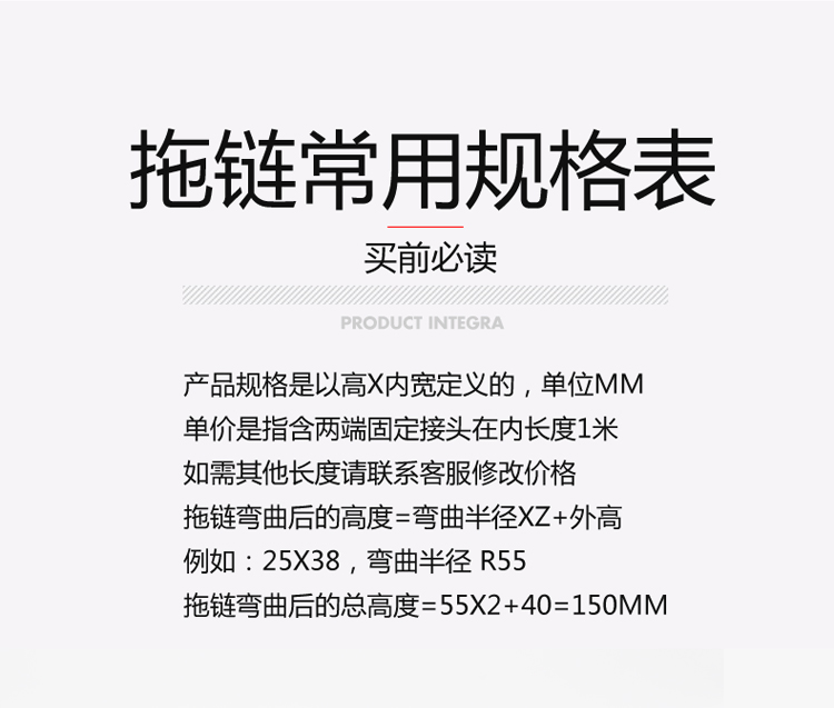 產品規格是以高*內寬定義的,單位為MM,單價是指含兩端固定接頭在內長度1米。