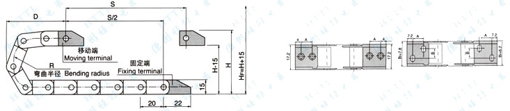型號 內腔(高x寬) 外徑(高x寬) 回轉半徑(R) 型式 對應接頭孔距(mm)