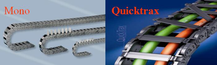 QUICKTRAX系列:采用了橫梁應(yīng)用特殊高柔性塑料及側(cè)板采用加玻纖的增強(qiáng)尼龍塑料,使得拖鏈更靜音,結(jié)構(gòu)更穩(wěn)定,抗扭性更強(qiáng)。