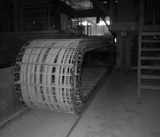 圖4 為某鋼廠煉鋼廠VOD 爐拖鏈,型號: SLP620 /750× 1140 × 11550; SLP620 /600 × 1140 × 10850,應用長壽命鋼制拖鏈使用周期提高到3 年。